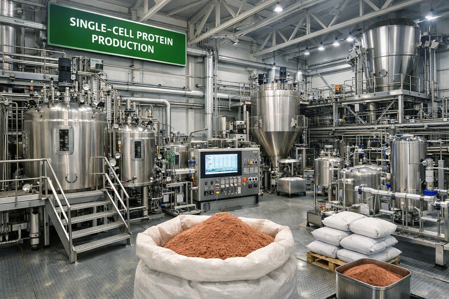 Đạm đơn bào (Single Cell Protein – SCP) với hàm lượng ~68% protein là nguồn đạm động vật vi sinh cao cấp, giàu axit amin thiết yếu, thường dùng thay thế bột cá hoặc đậu nành trong thức ăn chăn nuôi. Đây là sản phẩm được tạo ra từ vi sinh vật (nấm men, vi khuẩn, tảo) sau khi nuôi cấy, thu hoạch và sấy khô.